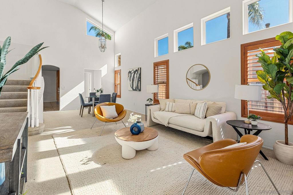 Perfectly located at the base of the Scripps Ranch hills, this 5-bedroom, 4-bathroom home offers an incredible opportunity to create your dream lifestyle in one of San Diego’s most sought-after neighborhoods with no mello roos. With a thoughtful layout, the home features two bedrooms and two bathrooms on the main floor, making it ideal for multi-generational living or hosting guests. Upstairs, the master suite provides a private retreat with a large bath, while two additional bedrooms offer versatility for family, guests, or a home office. The open-concept living, dining, and kitchen areas are filled with natural light, making the space ideal for entertaining or everyday living. The kitchen boasts abundant counter space, ample cabinetry, and a breakfast bar for casual dining or morning coffee. Step outside to a private backyard oasis, perfect for family gatherings, barbecues, or relaxing in the California sun or slip out side your back gate to enjoy the local trails. Situated in a quiet and picturesque neighborhood, this home is just minutes from top-rated schools like Dingeman Elementary, rated 9/10, parks, and convenient shopping. Enjoy the perfect blend of privacy and proximity with breathtaking hilltop views that enhance the neighborhood's tranquil ambiance. Don’t miss this opportunity to make this exceptional home your own in Scripps Ranch!