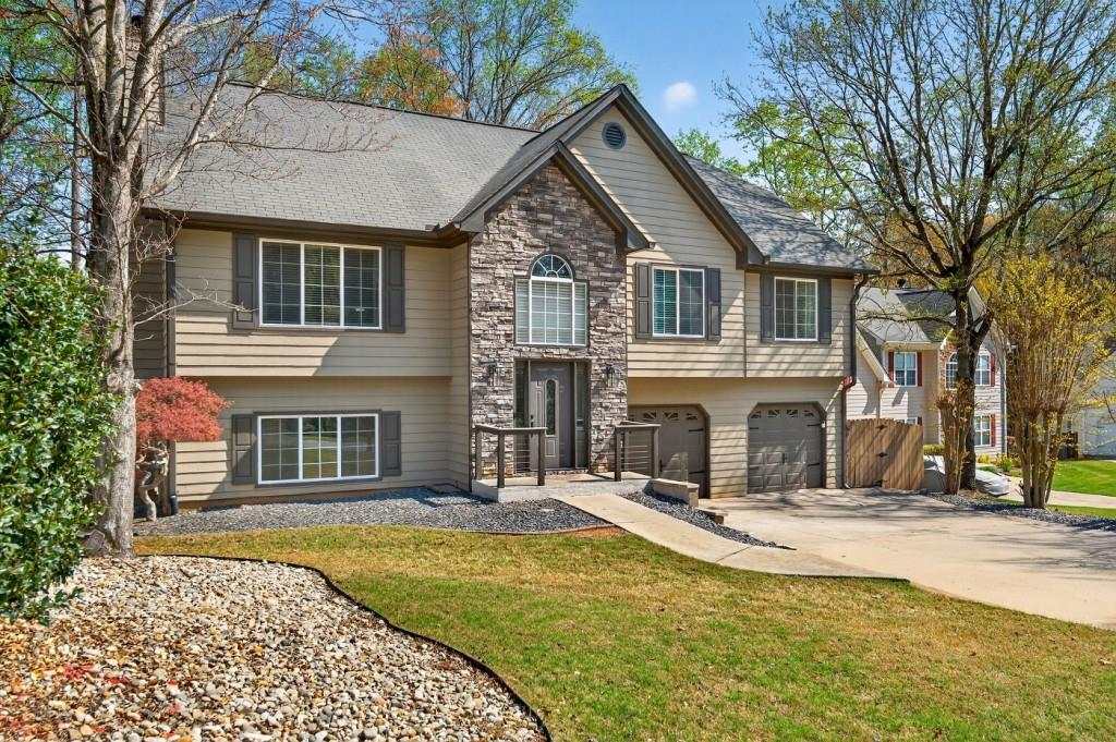 Welcome home to 2113 Township Dr. As you step into this stunning 4-bedroom, 3-bath home, you're immediately greeted by a spacious open layout designed for both everyday living and effortless entertaining. The completely remodeled primary suite serves as a private retreat, featuring a fully renovated spa-like bathroom oasis, and direct access to the back deck, perfect for enjoying your morning coffee in peace. Step outside to a fully redesigned and upgraded backyard featuring a newer deck with stairs leading down to the yard, lush landscaping, and two inviting firepit areas, ideal for relaxing evenings or hosting guests. A newly installed outdoor lighting system creates the perfect ambiance, allowing you to enjoy the space long after the sun sets. Inside, enjoy the convenience of smart home living with WiFi-enabled lighting and automated blinds, giving you the ability to control your home from anywhere. The finished basement includes an additional bedroom and full bathroom, creating the perfect guest suite or private living space, along with ample storage throughout the home. Tucked away on a quiet cul-de-sac in the highly desirable Township Place swim and tennis active community with lots of events through the year. The pool also offers an amazing slide!! this home offers both privacy and convenience. Located just 9 minutes from Downtown Woodstock, 5 minutes to I-575, and close to restaurants, shopping, and everyday essentials, this home truly checks all the boxes.